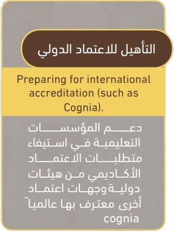 Developing curricula, enhancing institutional performance, supporting schools in achieving global accreditation (such as Cognia, Array Global Educational Company, AIAASC), and building internal quality systems.